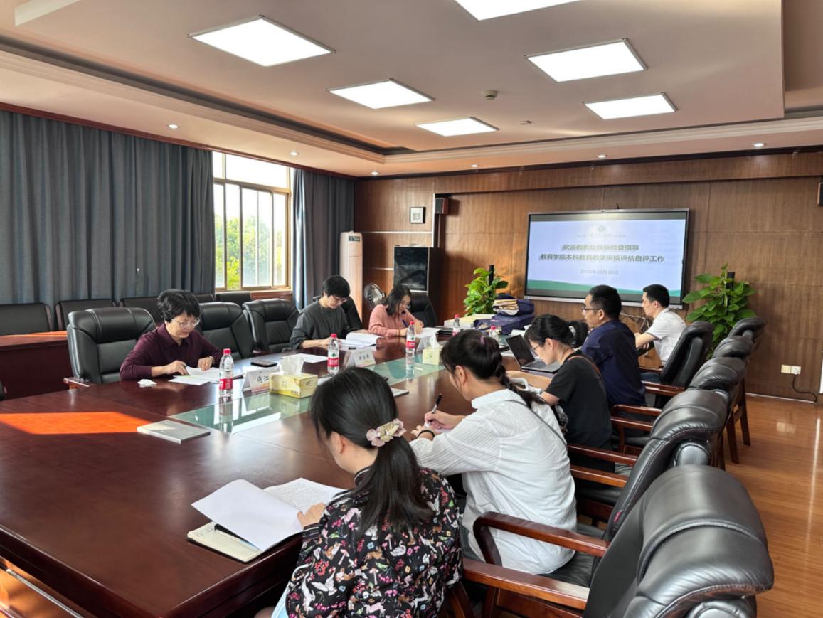 2023年10月19日上午,教务处组织专家来我院开展本科教育教学审核评估自评检查工作。校人事处副处长殷晓杰、教务处教学督导傅江平、教师教育科科长陈菲艳组成的检查组,对我院自评工作进行全面检查。王良辉副院长以及教务办全体成员出席本次检查工作。