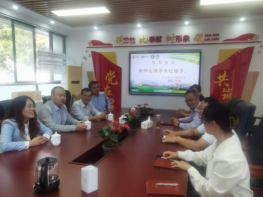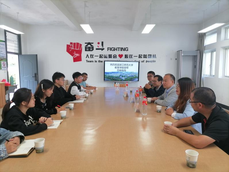 走访第二站,来到江山市滨江高级中学。姜式军校长、罗建副校长、周慧敏老师、李慧平老师、蔡苏芬老师等与教育学院一行人进行了热情的交流与座谈。