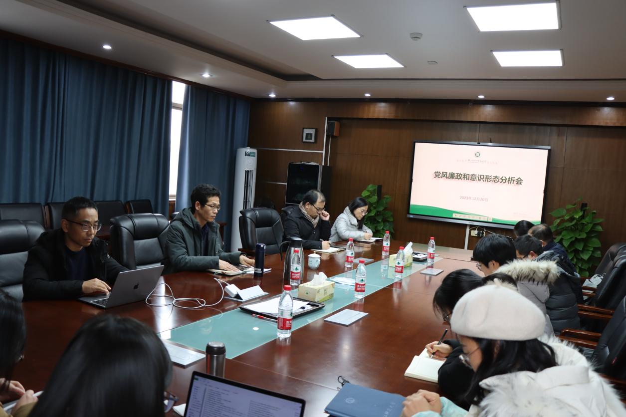 学院党政领导班子成员、科室负责人等依次结合各自工作实际,重点对选人用人、招生考试、财务管理、科研经费、学术诚信、生活作风等领域开展分析研判,系统而全面地梳理、分析下半年以来党风廉政、意识形态工作中存在的潜在风险隐患,同时提出相应整改举措。