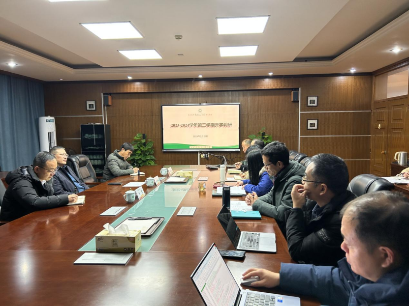 黄晓汇报了学院新学期开学工作的总体情况,并针对2024年拟开展的工作进行了重点汇报,学院将启动实施人才引进“大攻坚”、学科平台“大升级”、对非交流“大突破”、人才培养“大振兴”四大行动计划,建设高质量团队“集聚地”,增长高质量平台“强能级”,提升高质量项目“新品质”,打造高质量成果“真实效”,助力学院学科建设高质量内涵式发展。俞明祥重点汇报了寒假期间学院各项工作开展情况及在学科建设、实验室建设、科研奖项、人才引进等方面取得的成绩。