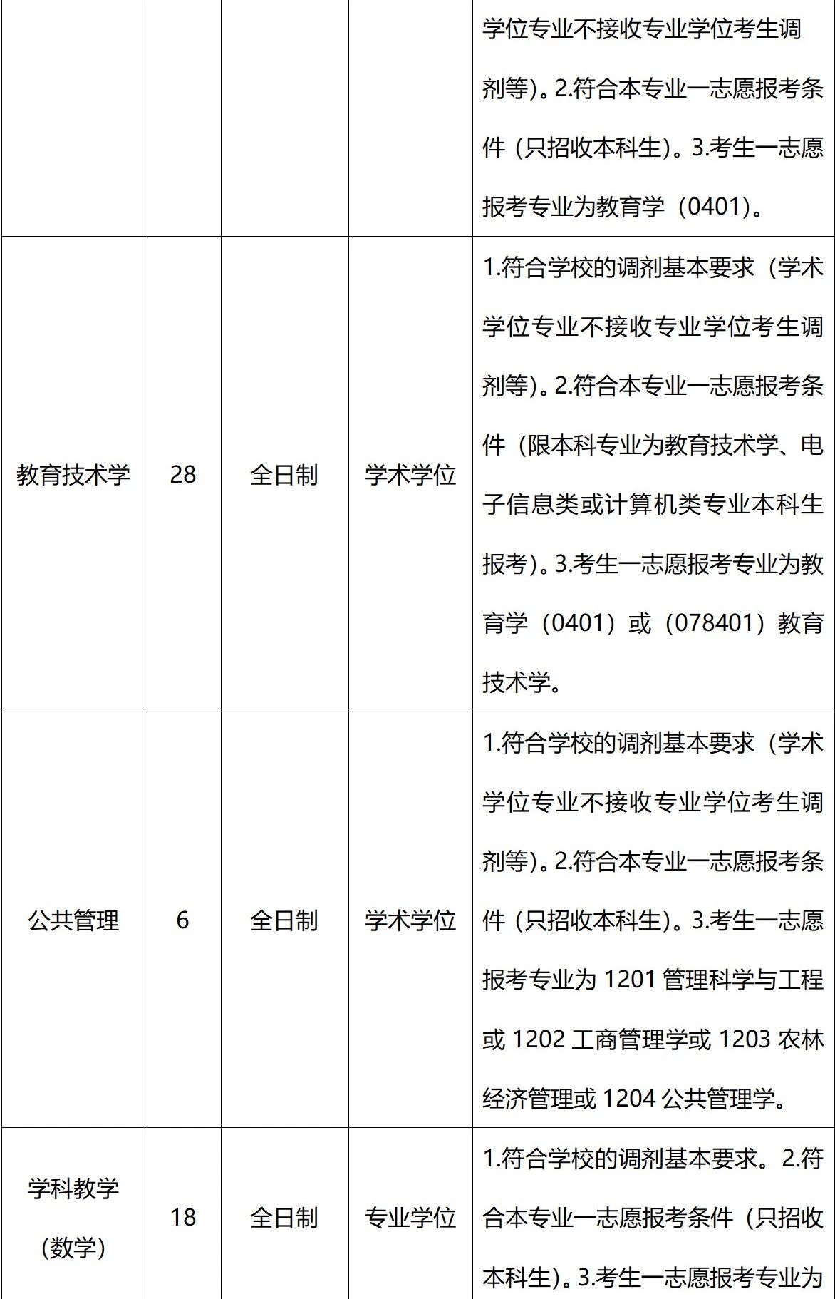 4.所有学术学位专业不接受专业学位考生调剂。