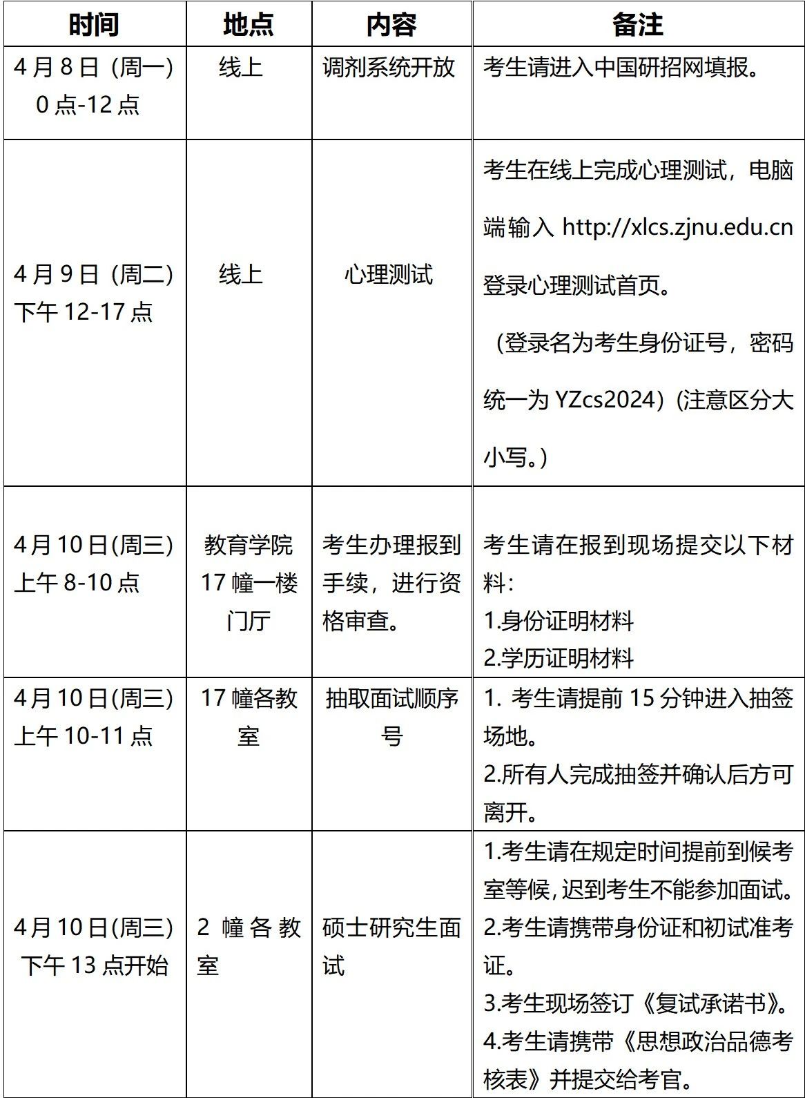教育学院2024年硕士研究生招生复试时间安排