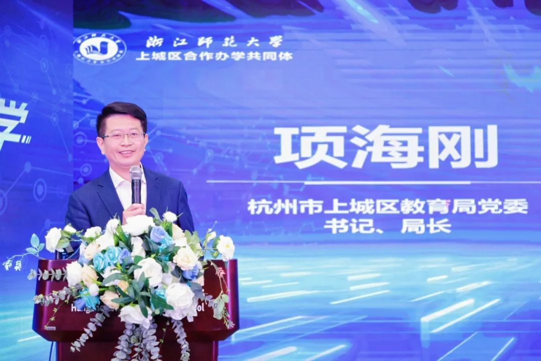 林一钢介绍了浙江师范大学、浙江师范大学教育学科的基本情况,回顾了近年来浙江师范大学和上城区各学校合作取得的硕果,并期待在现有基础上,进一步深入合作,探索智能时代的课堂教学新机制,校准合作发展的新目标,打造教育合作的新品牌,站在浙江高水平全面建设社会主义现代化、高质量发展建设共同富裕示范区的新起点,紧扣高质量育人核心任务,不断探索“校地合作”在教育支撑与经验积累方面的新路径,共同绘制合作发展的宏伟蓝图。