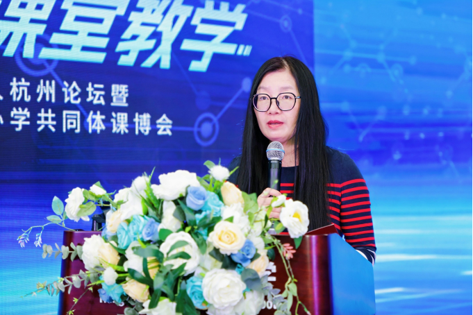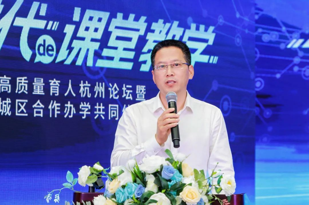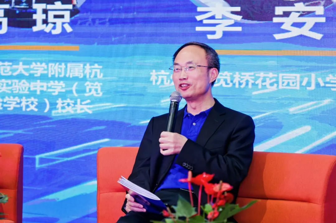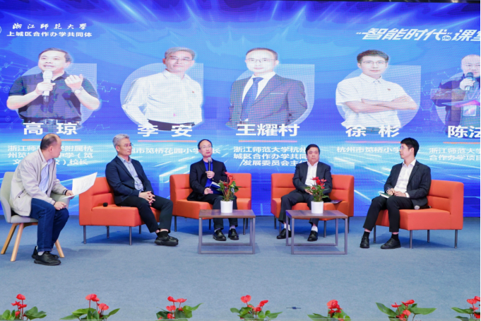 论坛第三环节为圆桌研讨,分别由浙江师范大学杭州上城区合作办学共同体发展委员会主任王耀村、浙江师范大学附属杭州笕桥实验中学校长高琼、杭州市笕桥花园小学校长李安,杭州市笕桥小学校长徐彬分享智能时代下学校课堂教学的实践、评价与发展。