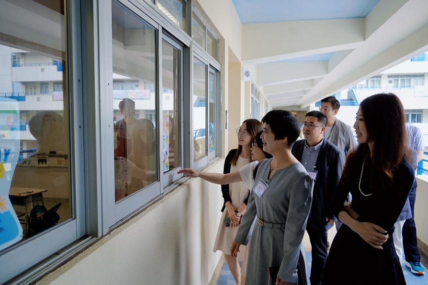 在香港保良局田家炳千禧小学,陈宝玲校长、陈志诚副校长、德育主任丁咏诗老师、梁晓欣老师和余翠妍老师热情接待,带领中心代表团一行参观走访了学校阅读角、教室、操场、智能温室、树屋等空间。学校充分利用校园自然环境,融合教育目标,设置了温室、树屋等独具特色的育人载体,令人耳目一新。期间,孩子们无论在教室、操场还是行走在长廊、过道,都很礼貌地挥手问候,令人如沐春风。