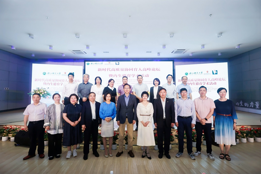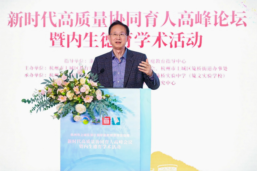 2024年5月14日,浙江师范大学田家炳德育研究中心(以下简称“中心”)参与协办新时代高质量协同育人高峰论坛暨内生德育学术活动。中心主任袁振国教授、常务副主任查颖教授、办公室主任彭年强、秘书何丹宁参与本次活动,活动在浙江师范大学附属杭州笕文实验学校举行。北京师范大学教授边玉芳,浙江省教育科学研究院院长朱永祥,《中国德育》副主编、编审刘洁,浙江省家庭教育指导中心副主任赵云丽,浙江教育报正高级编审言宏,杭州市上城区委常委毛素云,杭州市教育局德体卫艺处副处长梁树波,上城区教育局党委书记、局长项海刚,副局长王世美等相关专家、领导以及来自上城区各中小学校长、中心17所基地校校长、家长代表等三百余人参加本次活动。