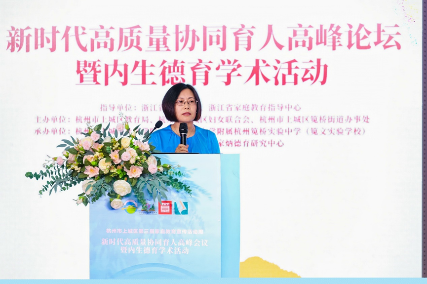 在经验分享环节,浙师大附属杭州笕桥实验中学(笕文实验学校)、笕桥街道、建兰中学学生家长、上城区妇联、家庭教育共同体的代表分别从不同视角分享了育人经验,探寻凝聚家校社协同育人力量,打造上城区协同育人新生态,促进孩子全面健康幸福成长。