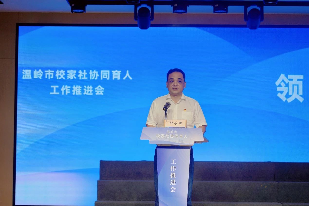 温岭市教育局党委书记、局长叶永峰向与会嘉宾介绍了近年来温岭市校家社协同育人的成果,分享了温岭市在焕活传统协同育人渠道、优化家庭教育指导服务体系、开拓协同育人示范引领新载体等方面的探索。温岭市将以今年成功入选浙江省“校家社”协同育人实验区为契机,进一步落实落细协同育人机制,做大做强协同育人品牌,加快形成“温岭范本”,助力推动温岭教育事业发展提质增效。
