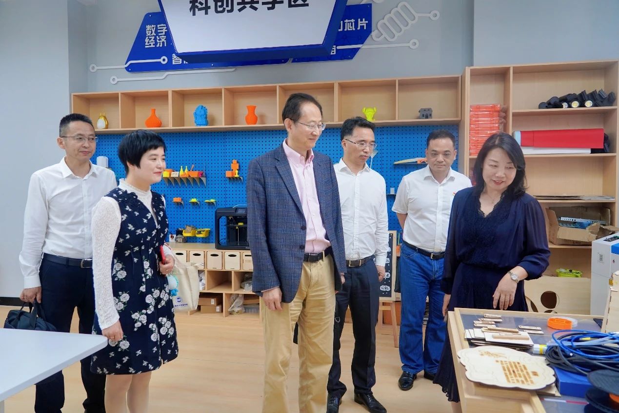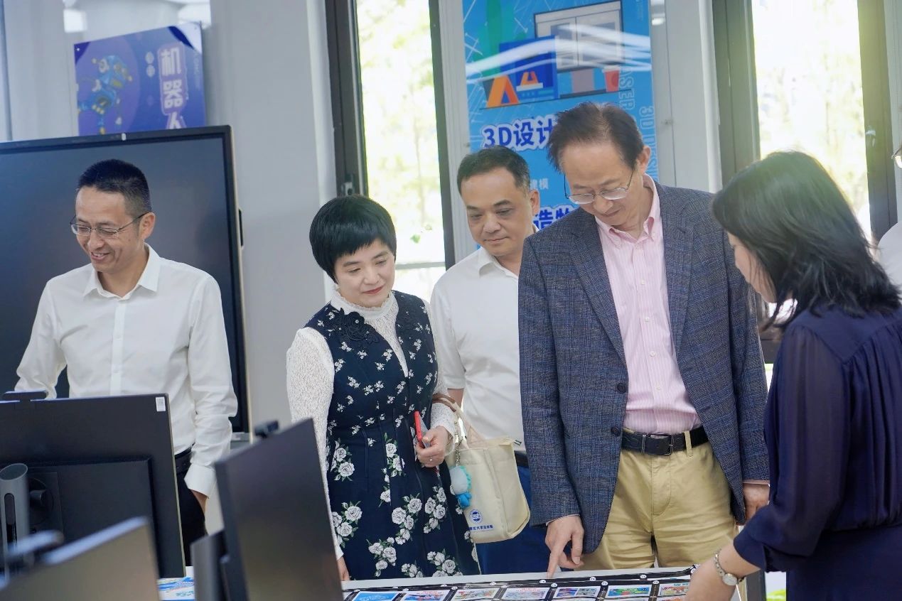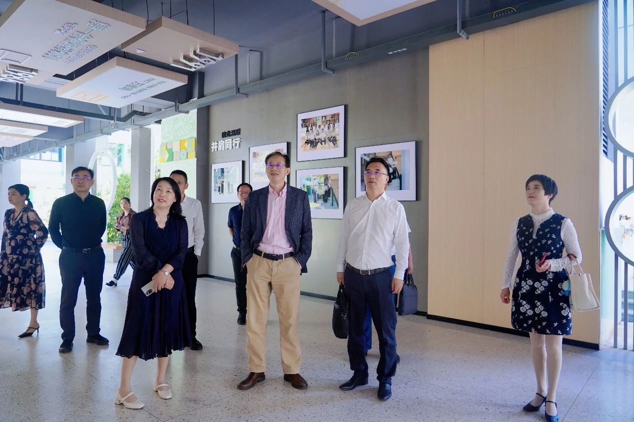 会议间隙,在温岭市人大常委会副主任骆立方、监察和司法工作委员会主任林晨、温岭市教育局局长叶永峰、副局长谢林秋、温岭市九龙小学校长周秀萍等的陪同下,中心成员走访调研了九龙小学,参观了学校的中华工匠室、工程建造室、文化长廊、阅读角、智慧农场等空间,对学校办学理念以及发展现状有了更直观的了解。