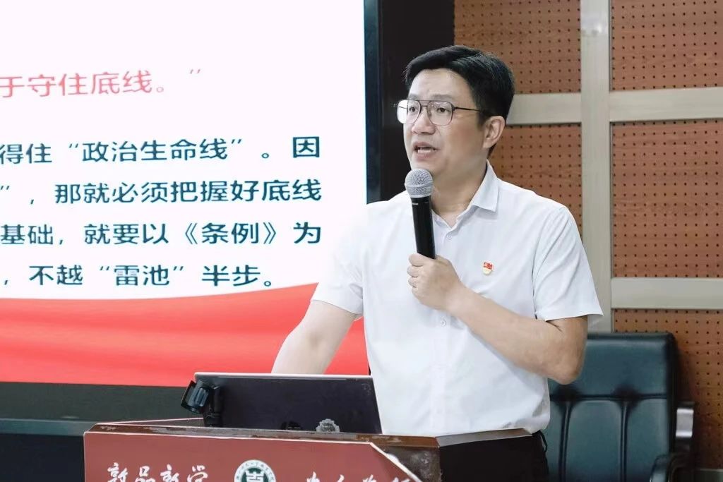 随后,学院党委书记苏煜为毕业生党员带来了《上好党纪“四堂课”,走好时代“赶考路”》主题微党课。第一课,学纪以正思。苏书记指出,师生党员要学好党规党纪,切实领悟党的纪律的内在要求,真正做到“铭纪于心,践纪于行”。第二课,知纪以正见。通过讲述开国上将李聚奎的故事,苏书记教育引导师生党员把握底线思维,守住“政治生命线”。第三课,明纪以正德。苏书记提出,广大青年党员要恪守为民宗旨,站稳人民立场,始终把群众的安危冷暖、急难愁盼作为奋斗方向。第四课,守纪以正行。苏书记强调“欲知平直,则必准绳;欲知方圆,则必规矩”,青年党员要将党的纪律贯穿于生活和工作的每一个环节,始终做到忠诚于党,勇于担当。
