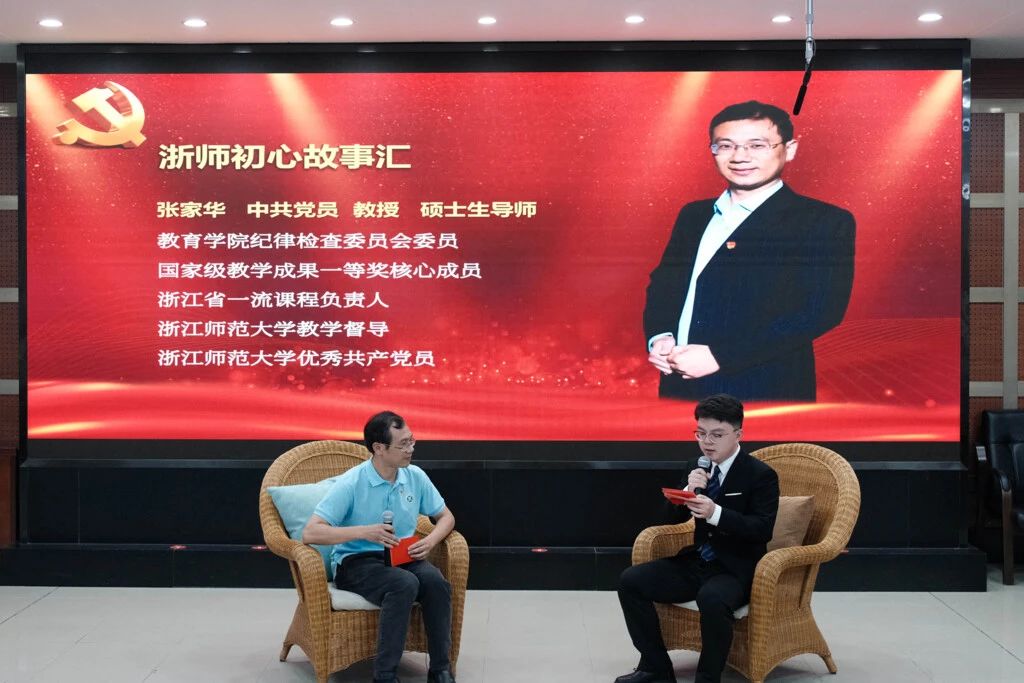 在本期浙师初心故事汇中,教育学院纪委委员张家华教授为毕业生党员分享了他的初心故事。谈及初心和使命,张家华老师通过回忆自己求学过程中遇到的优秀老师,表达了对“做一名优秀教师”初心的坚持。他指出,他在任教过程中很乐意倾听学生的心声,帮助学生成长,在他看来,学生学有所成,就是对教师的最大回报。在他的工作生涯中,始终将以“为学校、为集体奉献自己的力量”作为一种情怀,他希望每一位在座的学子在未来被需要的时候,能够用自己的担当与奉献谱写出青春的最美篇章。当提到“信息技术赋能教学创新”的未来教育趋势时,张老师认为高校青年教师应紧紧抓住时代主线,利用信息技术推动教学模式、方法和内容的创新,以适应新时代对人才培养的需求。最后,他寄语毕业生党员:“困难是磨砺意志的磨刀石,挑战是成就辉煌的阶梯。”
