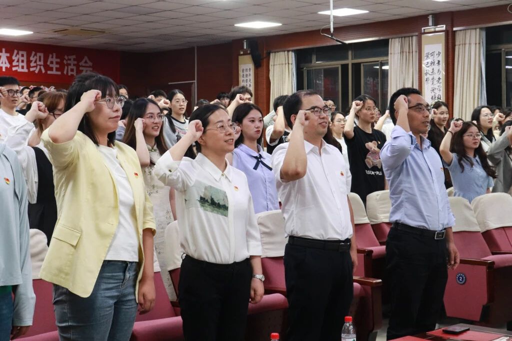 在梅晓勇老师的带领下,师生党员重温入党誓词。庄严肃穆的宣誓仪式,让每一位毕业生党员深深感受到身为党员的使命和荣耀,激励他们牢记政治责任、工作担当和光荣使命,为建设教育强国贡献新时代青春力量。