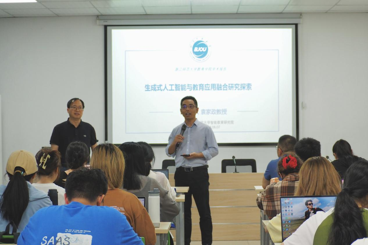 近日,首都师范大学博士生导师、人工智能专家袁家政教授受邀作题为“生成式人工智能(AIGC)与教育应用融合研究探索”的学术讲座。此次讲座由学院副院长王良辉教授主持,70余位师生参加了讲座。