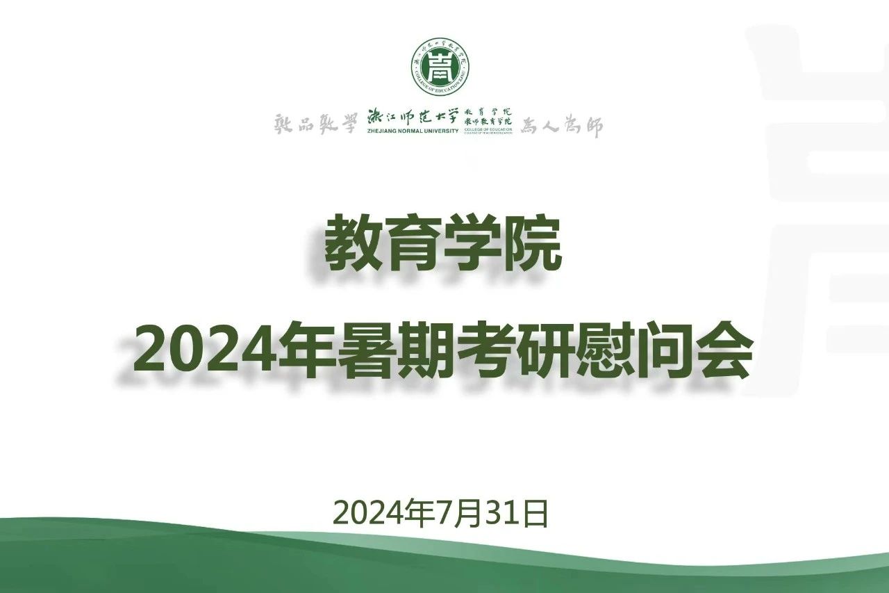 为进一步鼓舞考研学子士气,帮助他们缓解压力、坚定信心,7月31日上午,教育学院于17幢112教室召开2024年暑期考研慰问会。学院院长黄晓、党委书记苏煜、党委副书记王玉琴、副院长王良辉、团委书记兼学工办主任叶青、辅导员蔡鑫等出席了会议,对留校备考的学子进行慰问。