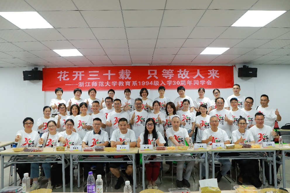 2024年8月15-16日,浙江师范大学教育系1994级入学三十周年同学会在母校举行。教育系原党总支书记吴惠青、教师教育学院原院长周跃良、KY开元集团院长黄晓、心理学院院长孙炳海、教师教育学院原办公室主任张国胜、教师教育学院原团总支书记金坚真、KY开元集团退休教师傅建明教授等领导和老师应邀出席。教育系94级本科中等教育专业和学前教育专业共34位同学参加了本次同学会。