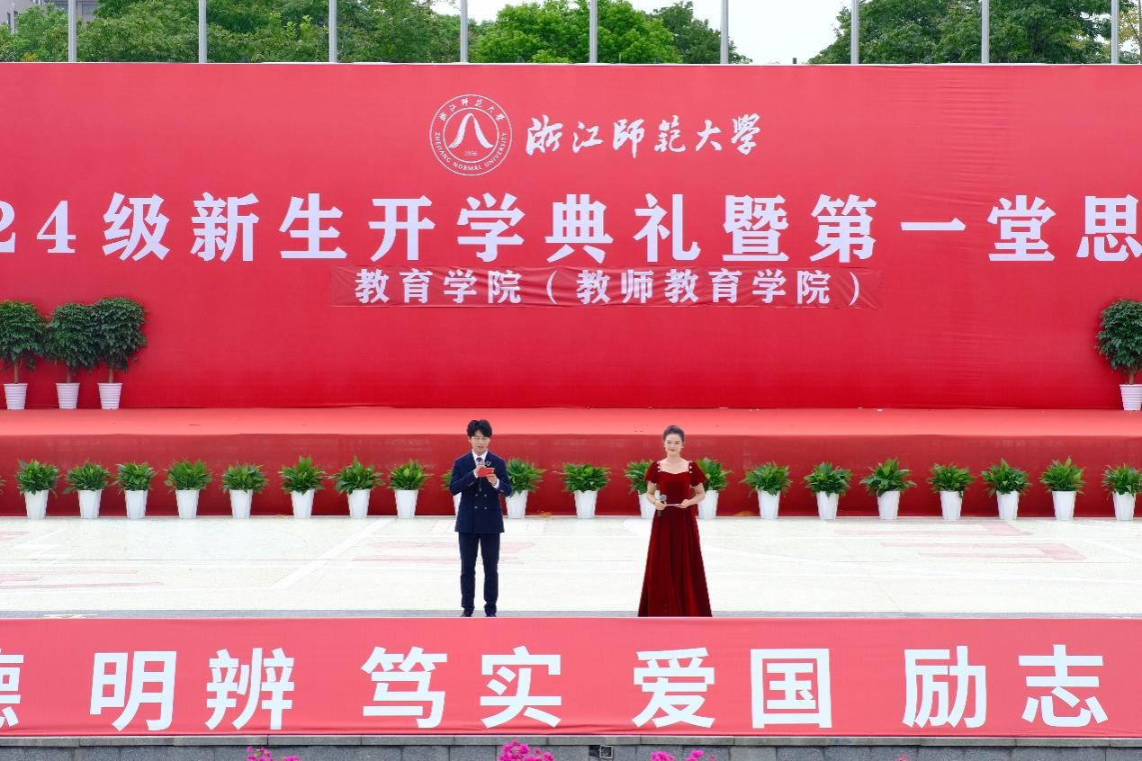 2024级博士生戴天宇同学作为学生代表发言。他感慨:“‘浙’里真的很好!好在舒适、自在;好在奋进、踏实;好在精彩、幸福!”他号召同学们在这片沃土中拼搏进取,谱写属于教育人的华丽篇章。