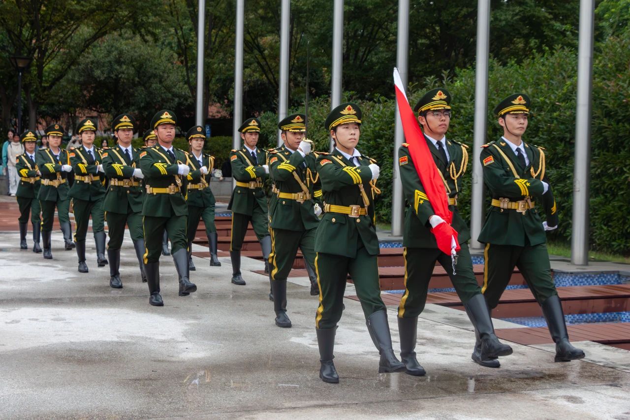 7点,升旗仪式正式开始。国旗护卫队踏着整齐的正步行进,护卫着国旗走向旗杆。伴随着雄壮的国歌声,五星红旗冉冉升起。全场师生肃立行注目礼,用坚定的目光和昂扬的歌声表达对祖国的深情。