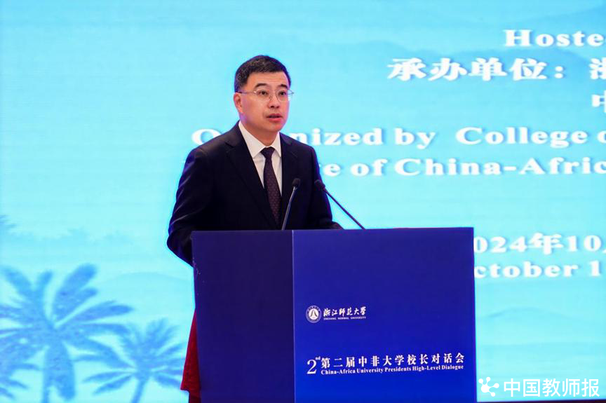 孙晓虎代表教育部教师工作司表示,教师队伍是教育强国第一资源,是教育高质量发展的决定力量,也是“和平、团结、繁荣、自强的新非洲”建设的重要依托力量。教师教育合作是中非高等教育交流与合作的重要组成部分和潜在拓展领域。浙江师范大学在推进中非教师教育交流与合作上积极探索、不遗余力、奋楫争先,取得突出成效。新时代的中非教师教育交流与合作要密切结合国际教师教育的最新发展动态,以教育家精神为指引、以《中非合作2035年愿景》《中非合作论坛——北京行动计划(2025-2027)》等重要政策为蓝图,力争实现高质量发展。愿我们各方能够提高认识站位、强化合作使命,加强政策对话、精准对接需求,善用数字资源、赋能教师教育,总结中国经验、贡献中国智慧,在教师队伍建设、优质资源开放、平台应用共享等方面加强国际交流合作,让世界人民共享教育文明成果。