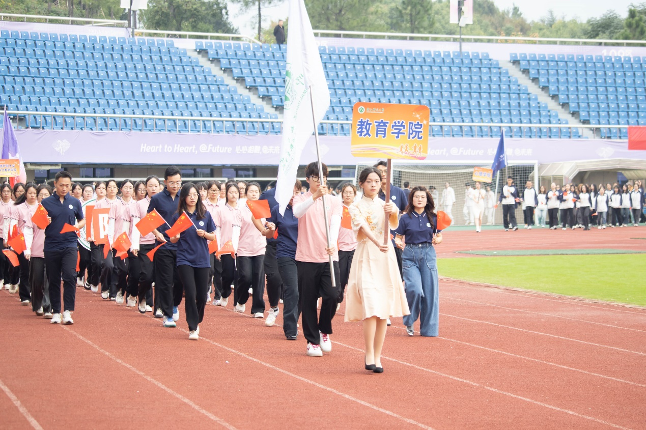 在运动会开幕式上,我院运动员代表身着院服,步伐整齐,口号响亮,充分展现了教育学子积极向上、团结协作的精神风貌。