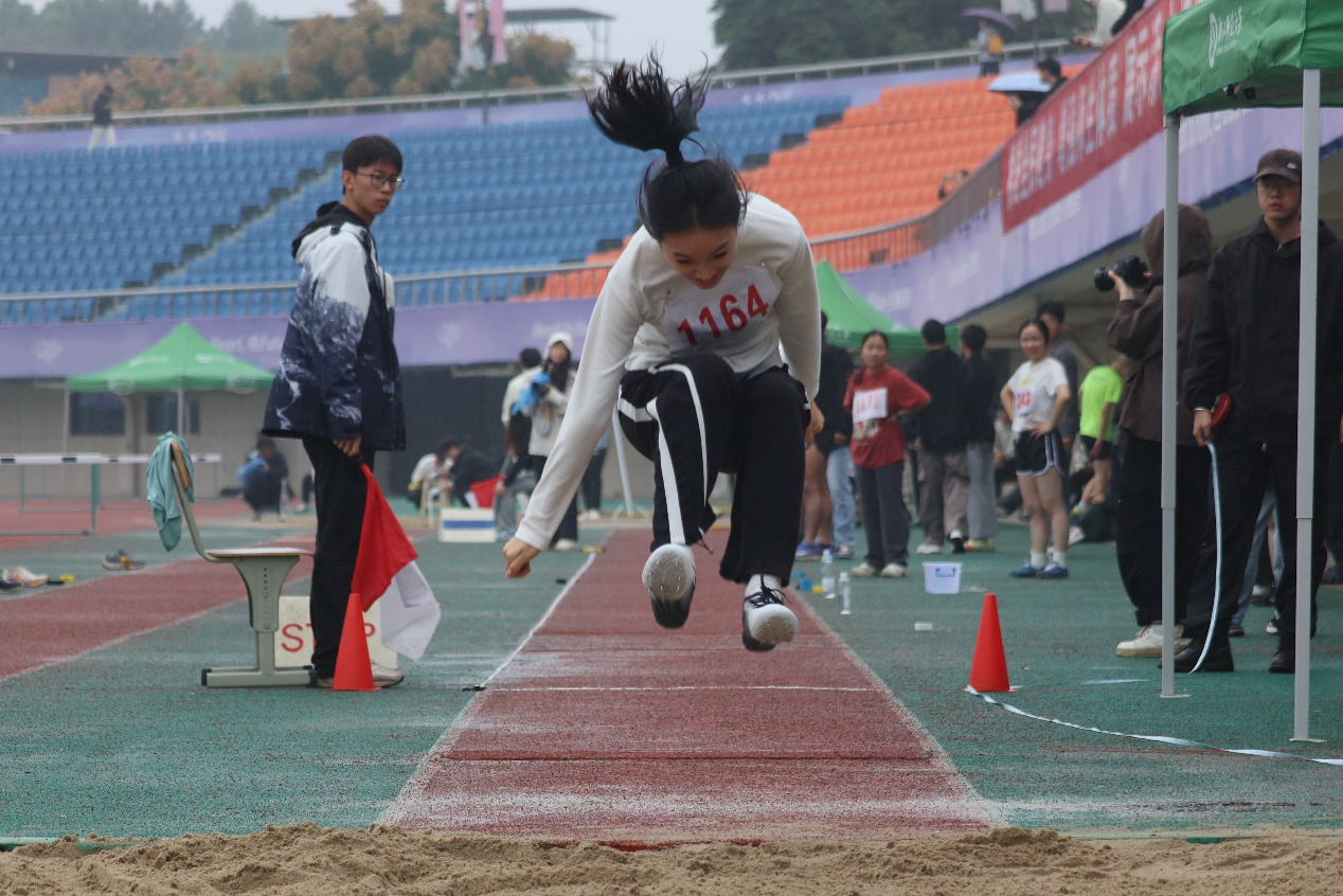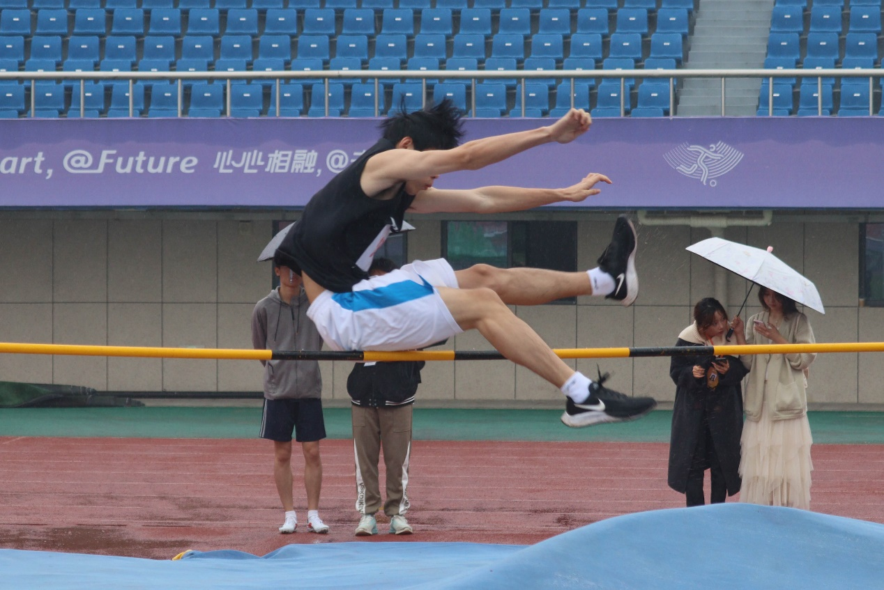 细雨绵绵,浇灭不了运动员们昂扬的斗志。在个人竞技项目中,姚哲宇高歌猛进,在男子甲组100米比赛中跑出“教育人”的加速度,斩获冠军。握持、助跑、起投……,徐满金蓄力一掷,在男子标枪比赛中一举夺冠。在女子400米跨栏比赛中,王欣婷在一次次的起跳与落地之间,棋逢对手,摘得亚军。在体力与意志力双重磨练的长跑比赛中,徐慧慧喜夺女子3000米亚军,余锦豪以优异的成绩摘得男子1500米亚军、男子5000米季军。