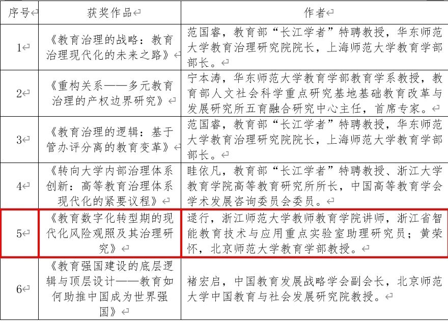 10月10日,第十四届钱学森城市学金奖、西湖城市学金奖征集评选公告 (2024)2号公布,我院青年教师逯行的学术成果《教育数字化转型期的现代化风险观照及其治理研究》荣获2024年度“第十四届钱学森城市学(教育)金奖提名奖”,成为本届教育领域获此殊荣的唯一一名青年学者。