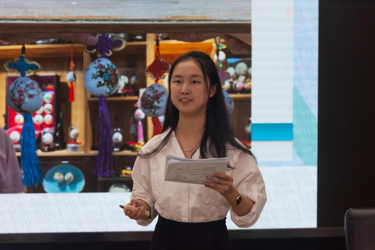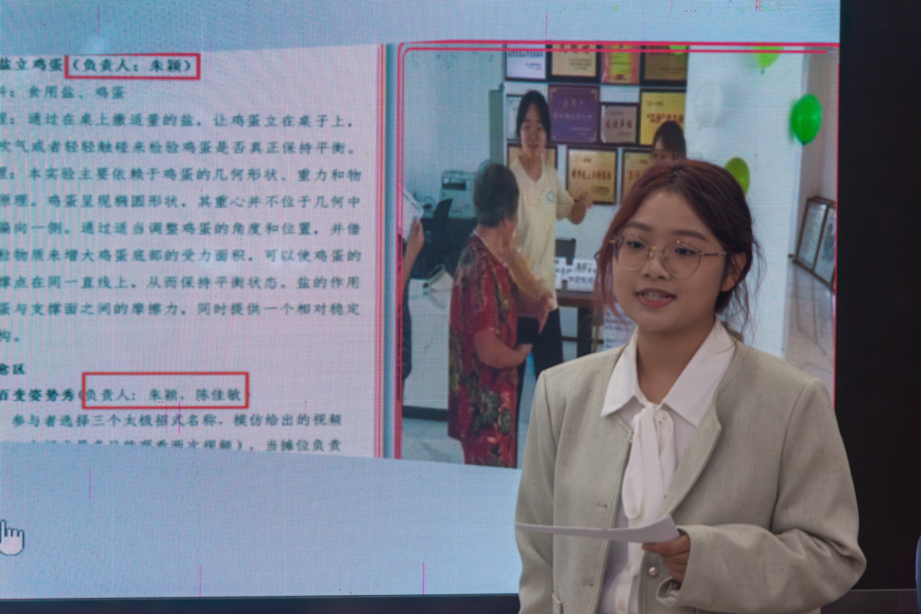 在团队实践成果展示环节,“教育星空”暑期社会实践队围绕“两山理论”、“康养文化”和“科普教育”三条主线,探索白沙溪幸福乡村建设。通过举办科普游园会、宣传“酸茶文化”、拍摄“最美笑容”、与村民共包爱心饺等活动,以实际行动为村民营造起温馨、活力、充满文化气息的幸福氛围;“瓯艺童心”手工非遗实践队“心怀乡土恩情,滋养美育劳育”,围绕“走出去”“担上肩”“动起来”,实践小队寻访博物馆文化馆、体验苍南文化馆讲解工作……将对瓯越非遗文化的热爱融入小学美育劳动教育体系,让瓯越非遗在稚嫩巧手中熠熠生辉!
