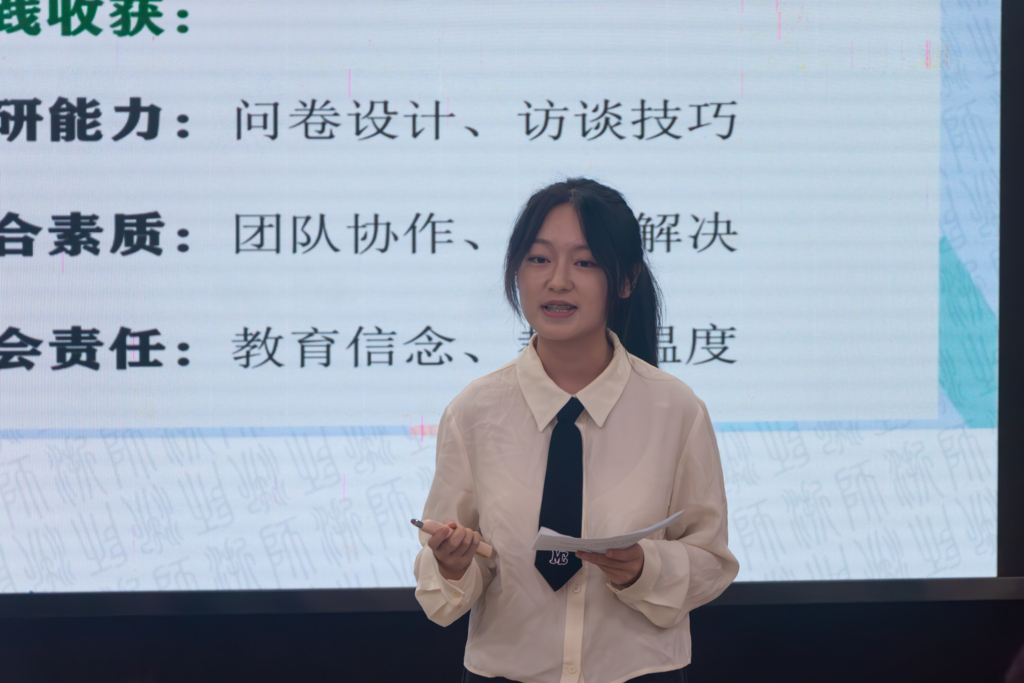 本次活动为同学们提供了分享交流、互鉴学习的平台。“青衿之志,履践致远”,愿教院学子将一次次实践探索经历融入教育职业生涯中,积极寻求书中“黄金屋”同脚下“万里路”的有机结合,在知行结合中锤炼本领、贡献智慧。