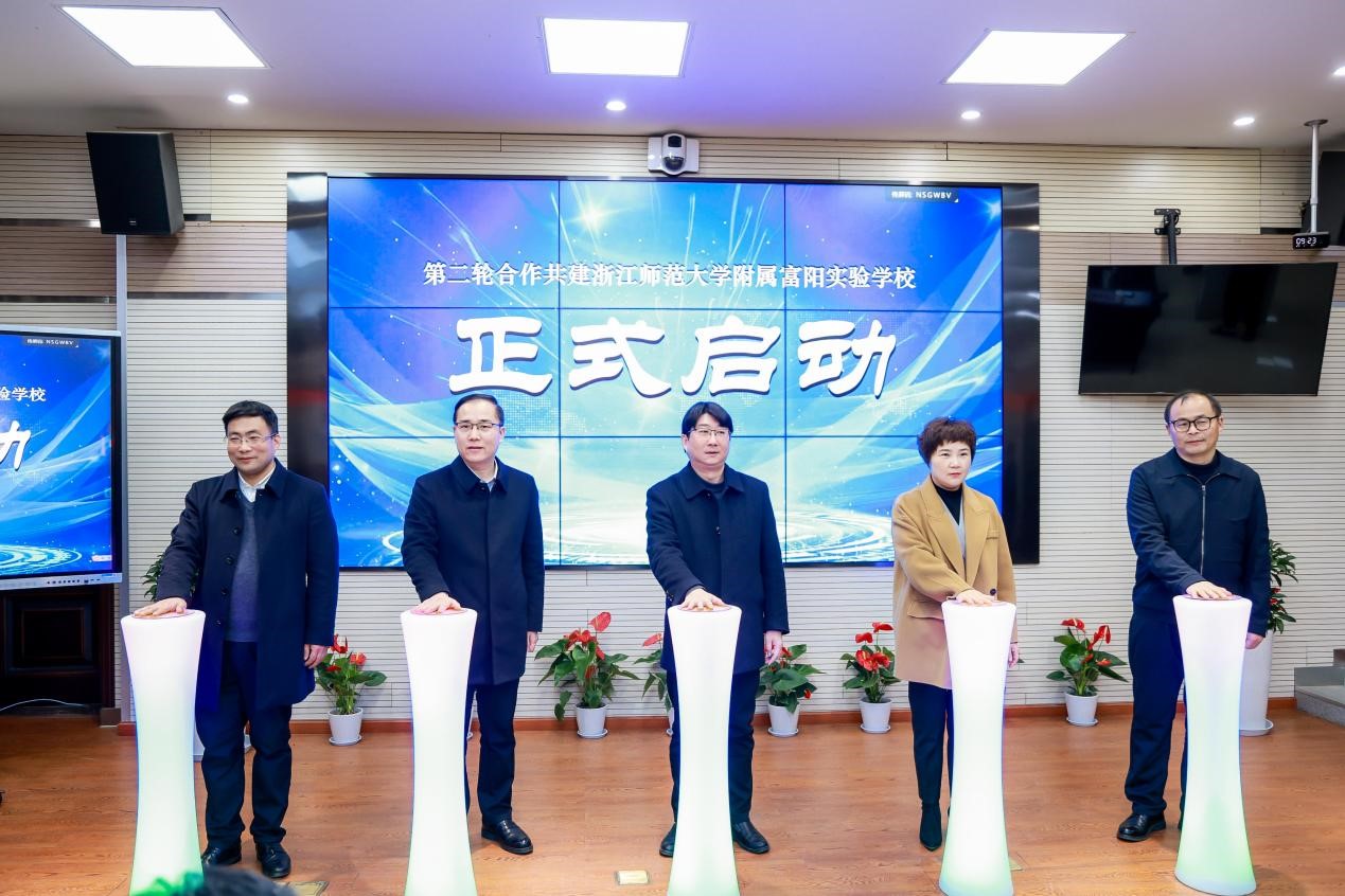 12月29日上午,浙江师范大学附属富阳实验学校第二轮合作共建签约仪式暨“智能时代的教与学”教育研讨会在该校隆重举行。中国教育学会常务副会长、《中国基础教育》总编辑翟博,中国教育学会副会长、浙江省教育学会会长、浙江省教育厅原副厅长韩平,浙江师范大学副校长兼教育学院院长林一钢,杭州市教育局副局长蒋锋、富阳区副区长詹艳青,学校继教处、教育学院相关负责人等出席。开幕式由富阳区教育局局长费国民主持。