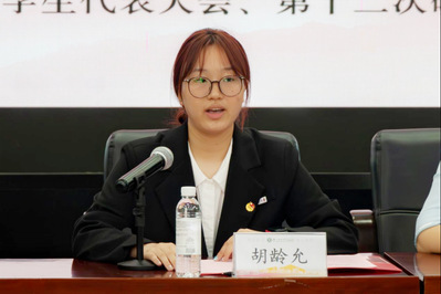 校学生会执行主席胡龄允回顾了我院学生会过去一年的各项工作,并分享了三点工作感悟:一是加强思想引领,提高服务意识;二是紧扣实际需求,开展特色工作;三是重视队伍建设,凝聚团队力量。