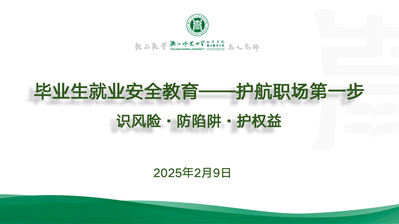 会上,蔡鑫简述了当前就业市场的形势,强调求职过程中了解市场需求的重要性,针对毕业生在就业过程中可能遇到的各类安全问题,如求职诈骗、合同陷阱、隐私泄漏、人身安全等,通过真实案例详细讲解,并给出具体的防范建议和应对措施。希望同学们进一步结合网络资源,深入了解求职过程中常见的法律风险,切实保护自身求职权益。