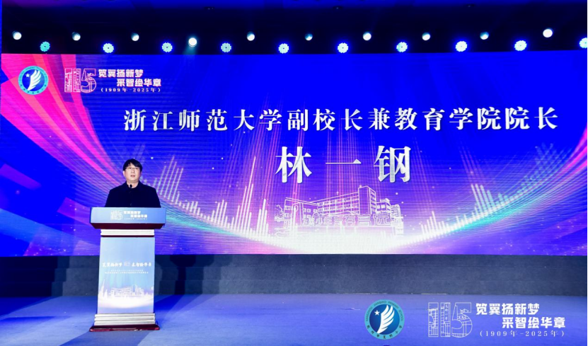 林一钢向出席活动的领导和嘉宾表示热烈欢迎,并向笕桥小学全体师生致以诚挚问候。林一钢回顾了浙江师范大学与上城区及笕桥小学多年来的合作历程,特别是共建浙江师范大学杭州上城区合作办学共同体的发展历程。林一钢强调,双方合作不仅体现在办学质量的显著提升,更在于教育理念的创新与实践。近年来,浙江师范大学与笕桥小学携手打造“基于智慧教室环境下的同步差异课堂策略研究”项目,取得丰硕成果:课题成功立项并即将出版研究专著。特别值得一提的是,笕桥小学先后承办了2023年共同体的“学博会”和2024年的“文博会”,充分展示了学校在前沿教育理念与实践领域的卓越成就。