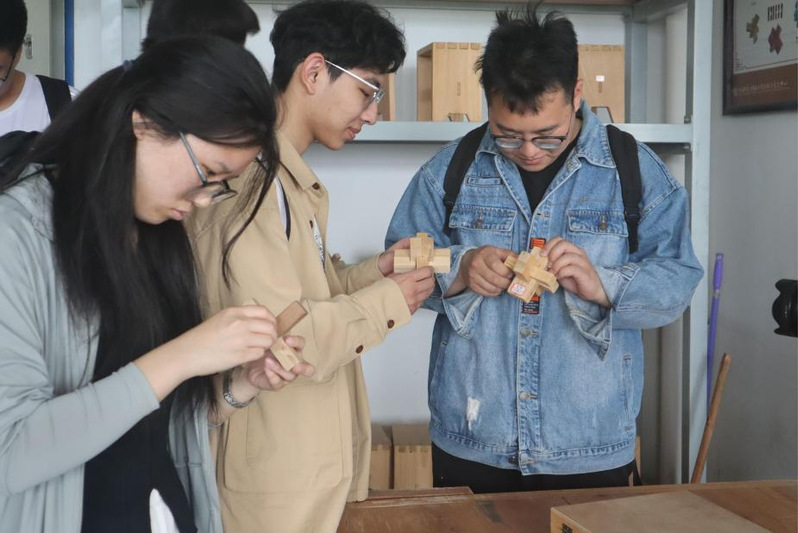 带着对传统木工文化的浓厚兴趣与探索热情,同学们走进木作雕刻实验室。在实验室内,大家深入了解《现代木工制作》等课程内容,亲手体验鲁班锁拆解组装、木箱打造等实践项目,在一榫一卯间感悟传统木工技艺与现代工艺的传承创新。