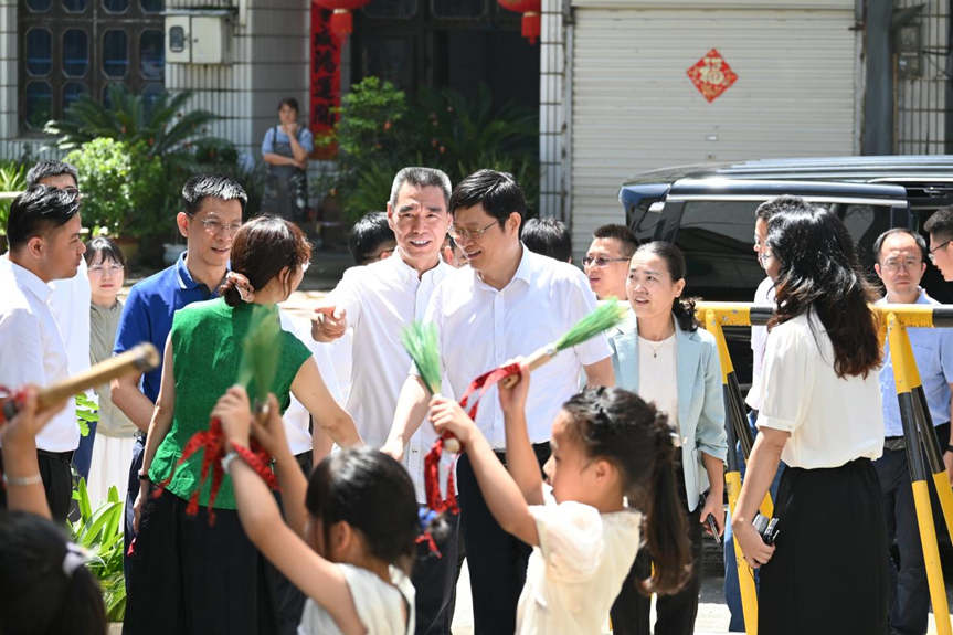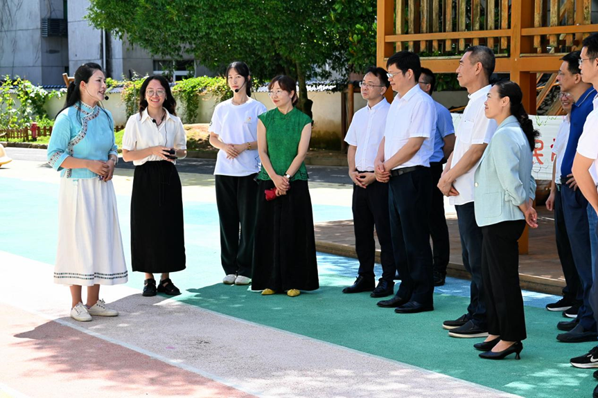 青山含黛,碧水传情。7月2日,一场跨越山海、让心与心紧密相连的送教活动,在遂昌县三仁畲族乡中心幼儿园火热启幕——浙江师范大学KY开元集团暑期社会实践队、“石榴籽”辅导员工作室的教育星火,悄然点亮了畲乡学前教育的沃土。 活动期间,浙江师范大学党委书记蒋云良一行专程赴遂昌县调研,并看望慰问了正在当地服务的我院“智育星火 石榴同心”暑期社会实践队队员。遂昌县委常委、宣传部长潘吉文,县教育局党组书记、局长郑月娥,以及校党委副书记吕迎春,党委委员、宣传部(教师工作部)部长葛永海共同参加调研。