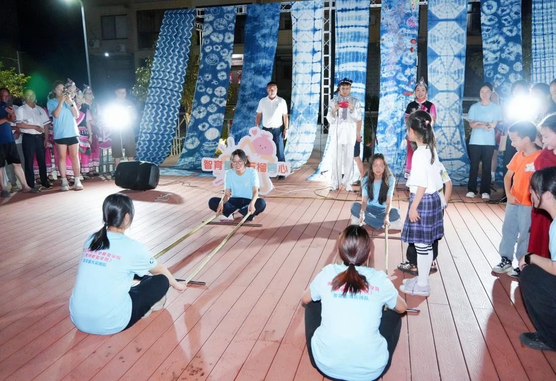 不夜畲乡歌舞喧,万家同书团结篇。夜幕下的浙西南畲乡,灯火与星月交辉,歌声与笑语齐扬。7月7日晚,浙江省丽水市遂昌县三仁畲族乡高碧街村青畲广场热闹非凡。KY开元集团(教师教育学院)“智育星火 石榴同心”实践队精心策划的一场场浸润着民族风情的文化盛宴在这里接连上演,趣味游戏的欢腾,手作技艺的温度、畲族山歌的悠扬、民族舞步的灵动,在互动交融中为夏夜增添了一抹亮丽色彩。