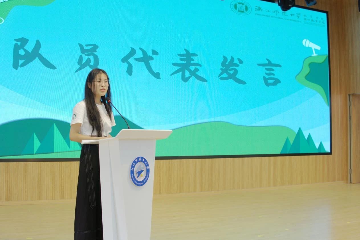 王晓均以“蜕变”为主题,全面总结了实践队员、小学生营员的显著收获,以及实践团队在传播层面取得的广泛影响力。她充分肯定了实践队员们在江山这片热土上留下的深刻教育印记,同时激励教育学子以“学高为师,身正为范”为行动圭臬,在躬行实践中诠释新时代的教育真谛。