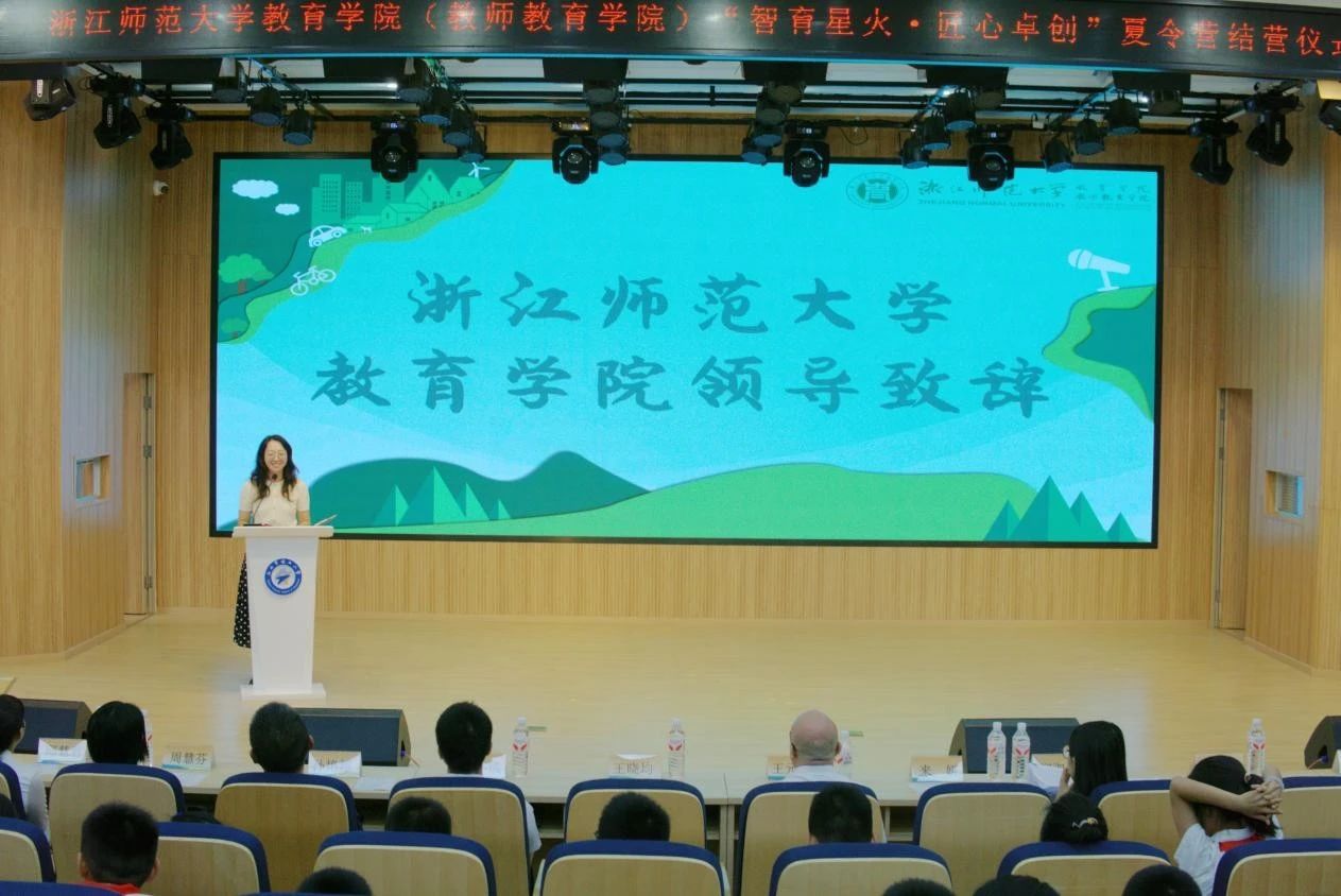 姜玲首先向国家政策的有力支持与浙江师范大学的无私奉献致以诚挚谢意,同时对本次夏令营中“鲁班工坊”等系列课程的创新实践给予高度评价。她特别提到,在“山海协作”框架下,实践队员们通过调研展现出赋能乡村教育的丰硕成果,并寄语队员们未来在教坛耕耘中“以教育为舟,载匠心远航”。