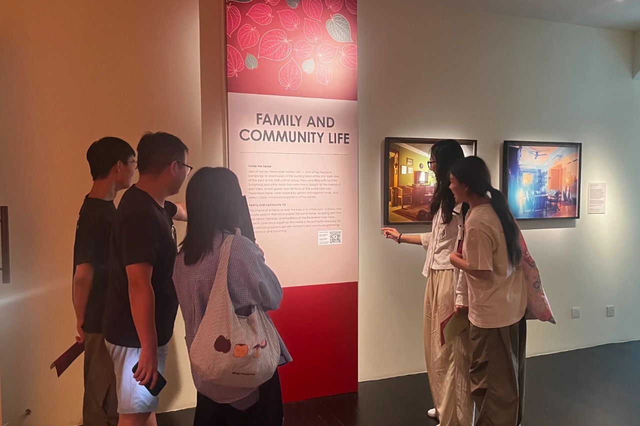 步入娘惹博物馆展厅,同学们欣赏华丽的珠绣服饰,感受细密针脚里藏着的马来与华族文化交融之美;端详精致的瓷器餐具,斑斓的色彩间流淌着岁月沉淀的生活气息;触摸古旧的红木家具,雕刻的花纹诉说着几代人的家族故事,感受着娘惹文化独有的温婉与厚重。