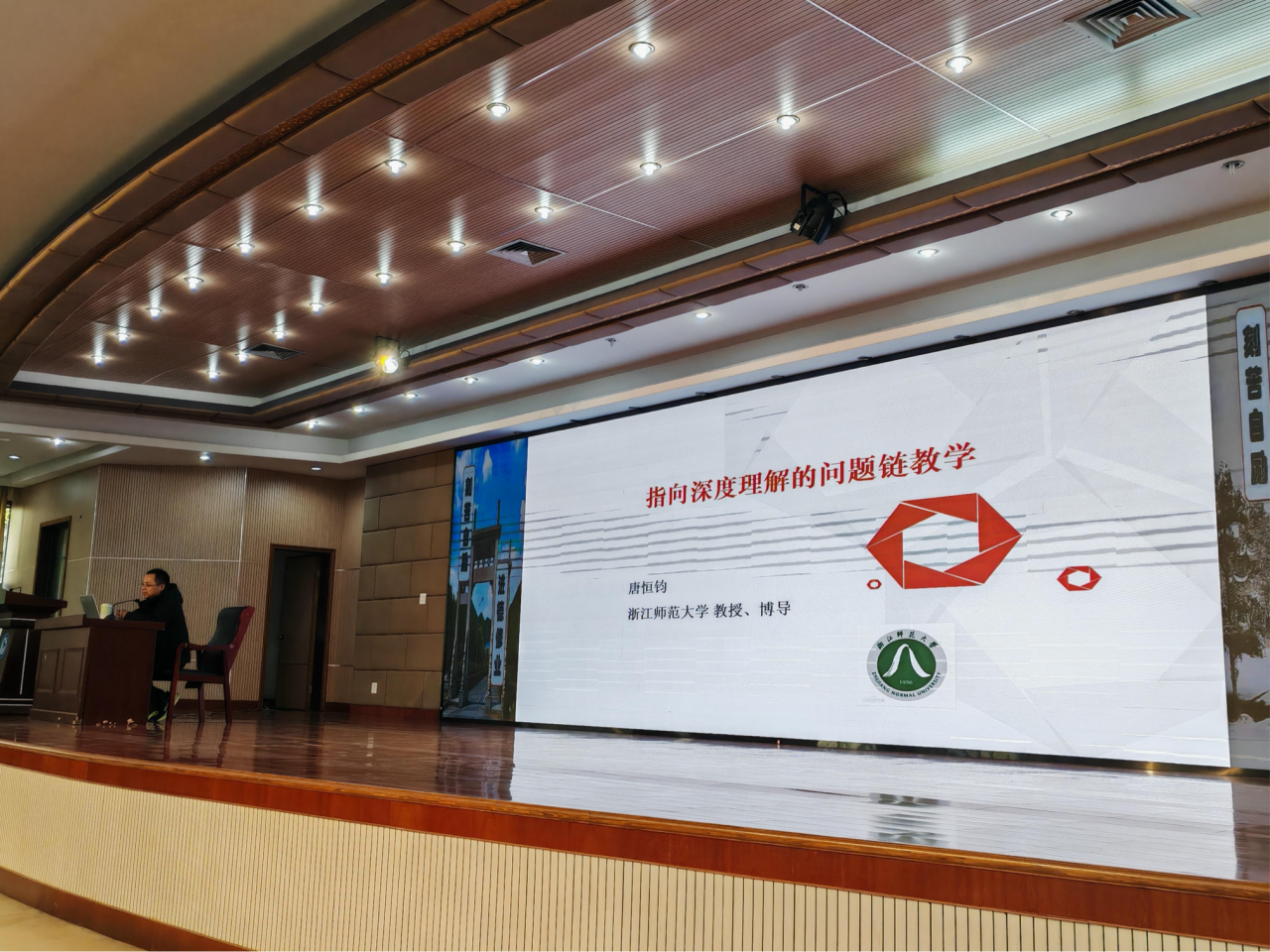 11月21日,浙师大附属萧山二中举行第三届素养导向教学实践探索学术节开幕式,外派联系专家韦正航邀请浙师大唐恒钧教授莅临指导。唐教授为全校教师作《指向深度理解的问题链教学》专题讲座,围绕问题链的设计策略与实施路径,深入阐释如何促进学生深度学习,助力课堂教学提质增效。