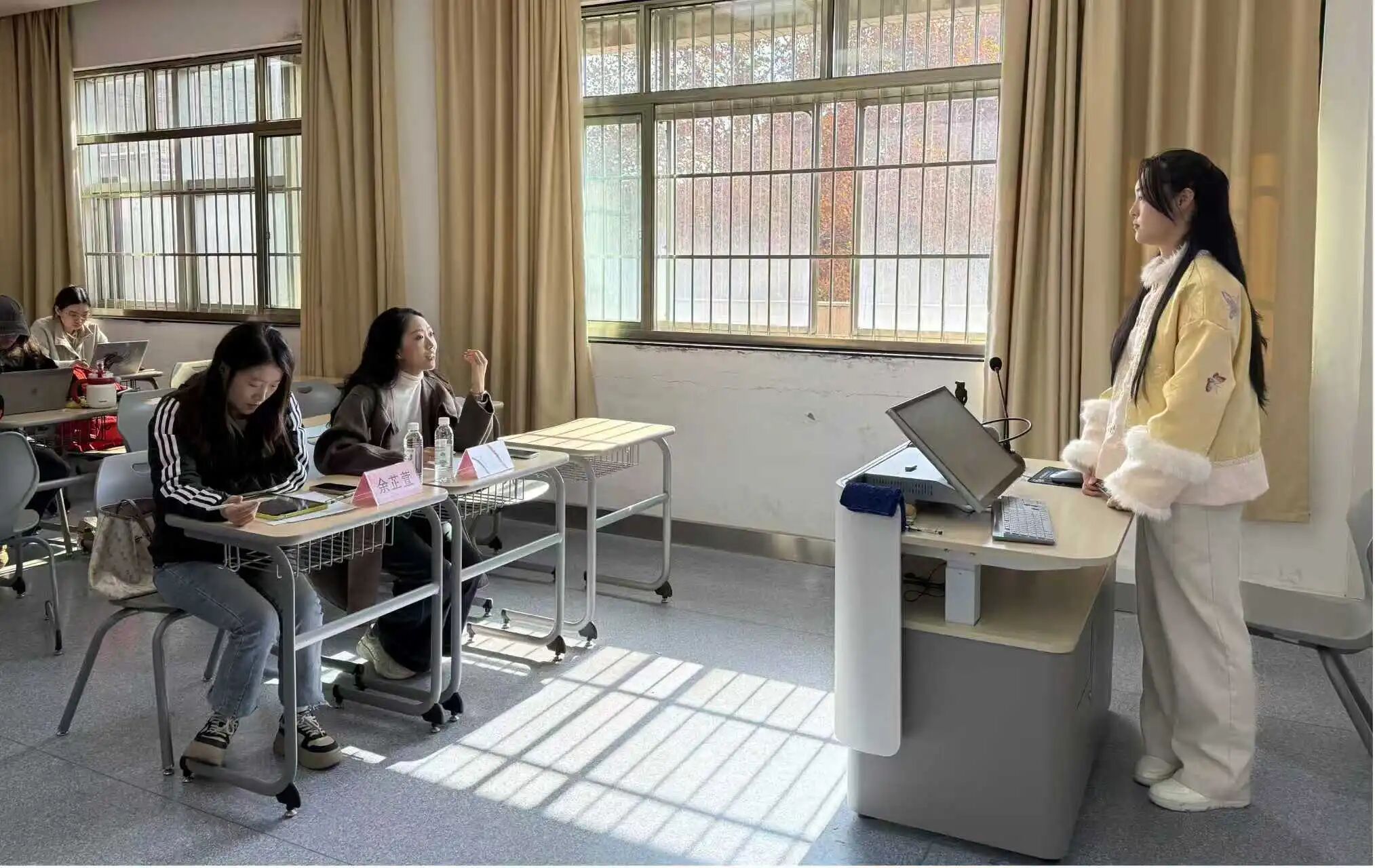 会上,郑一可同学分享了“先缓后紧”的备赛策略,并着重展示了“图文结合”的板书设计技巧,强调了简笔画在提升板书美感中的重要作用。余芷萱同学则结合自身经历,从“风格定位”与“教学目标”出发,深入剖析了如何通过小切口实现教学效果最大化,并鼓励同学们在迷茫中坚持,将理论转化为可感知的课堂实践。这场干货满满的分享会,不仅向同学们传授了实战经验,更在精神层面激励着我院学子砥砺奋斗。