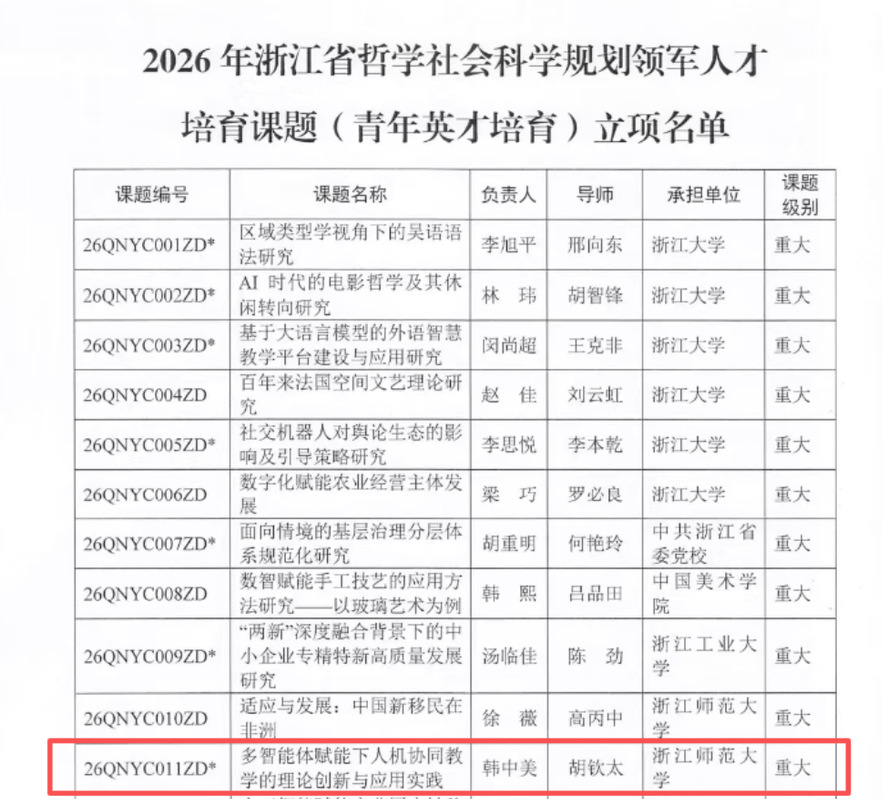韩中美副教授成功入选浙江省之江青年拔尖人才及省级青年人才(教育人才),展现了其在教育领域的专业潜力。