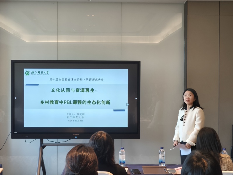 褚晓明作题为《文化认同与资源再生:乡村教育中PBL课程的生态化创新》的主题发言。她结合浙东余姚地区的乡村教育实际,提出“文化生态型PBL课程”理念,从文化再生产与文化生态学视角出发,构建了支撑层、内容层、目标层相互联动的课程模型,并探讨“AI+PBL”融合下的数字赋能路径。点评专家认为研究关注到项目式课程与国家课程标准的衔接,回应教育数字化转型背景下乡村教育高质量发展的需求,选题契合教育强国建设方向,理念创新且具备实践落地价值。