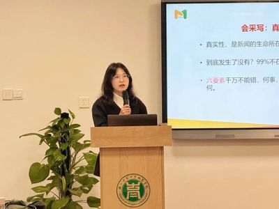 盛灿灿围绕新闻宣传实务开展专题指导。她系统讲解了新闻写作中真实性与时效性的把控技巧,深入剖析“硬新闻”倒金字塔结构及核心写作要领,并就标题提炼、导语撰写、主体内容铺陈、结尾升华等全流程环节逐一讲解,着重强调内容逻辑的严谨性与语言表达的规范性。立足学院育人特色与宣传需求,她提出了兼具实操性与针对性的优化建议,为进一步提升学院宣传工作专业化、规范化水平提供了清晰可行的方法指引。